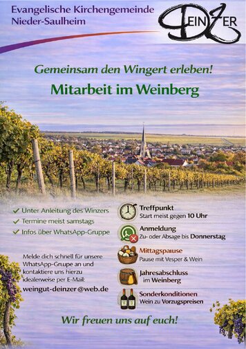 Evangelische Kirchengemeinde Nieder-Saulheim und Weingut Deinzer laden zur Mitarbeit im Weinberg ein